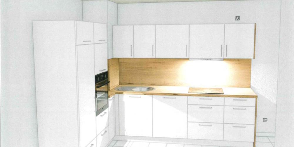 - Cuisine équipée ouverte sur séjour comprenant : plaque induction, hotte, four, frigo, meubles et évier + raccord lave-linge