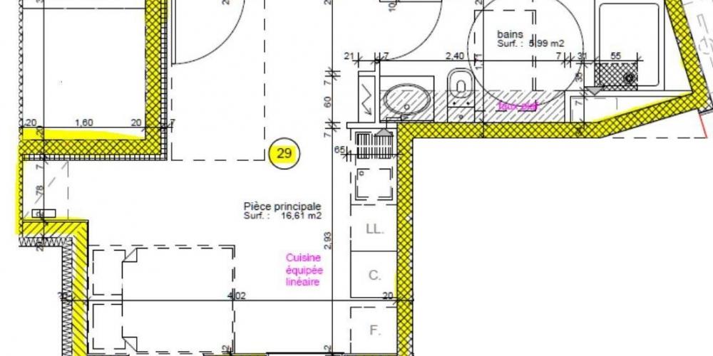 - Une cuisine équipée avec plaques vitrocéramiques, hotte, four, réfrigérateur, meubles et évier + raccord lave-linge.