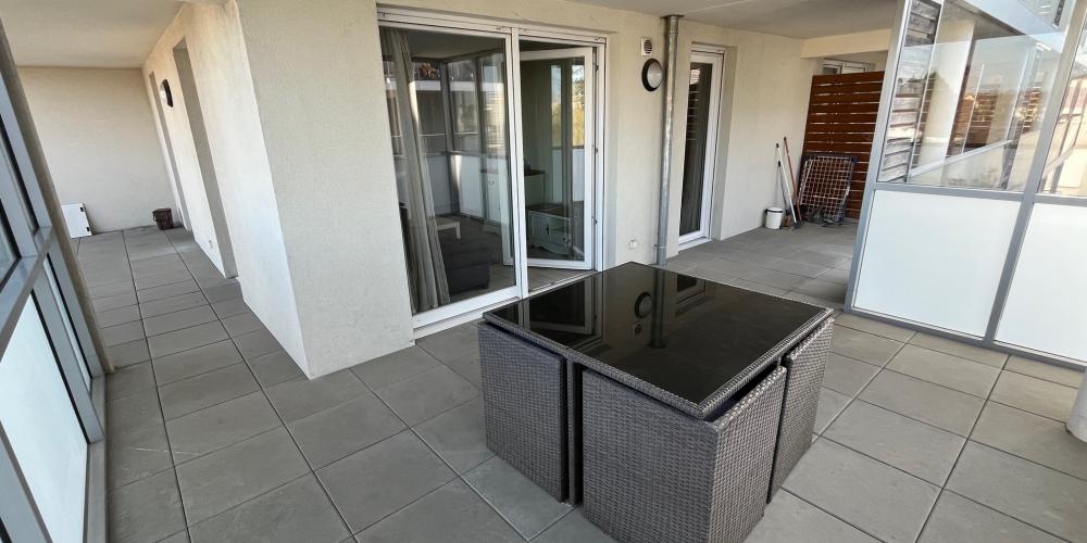 Il se compose d'une petite entrée, d'un salon avec cuisine entièrement équipée ouverte, d'une chambre, d'une salle d'eau avec WC, et d'une grande terrasse.